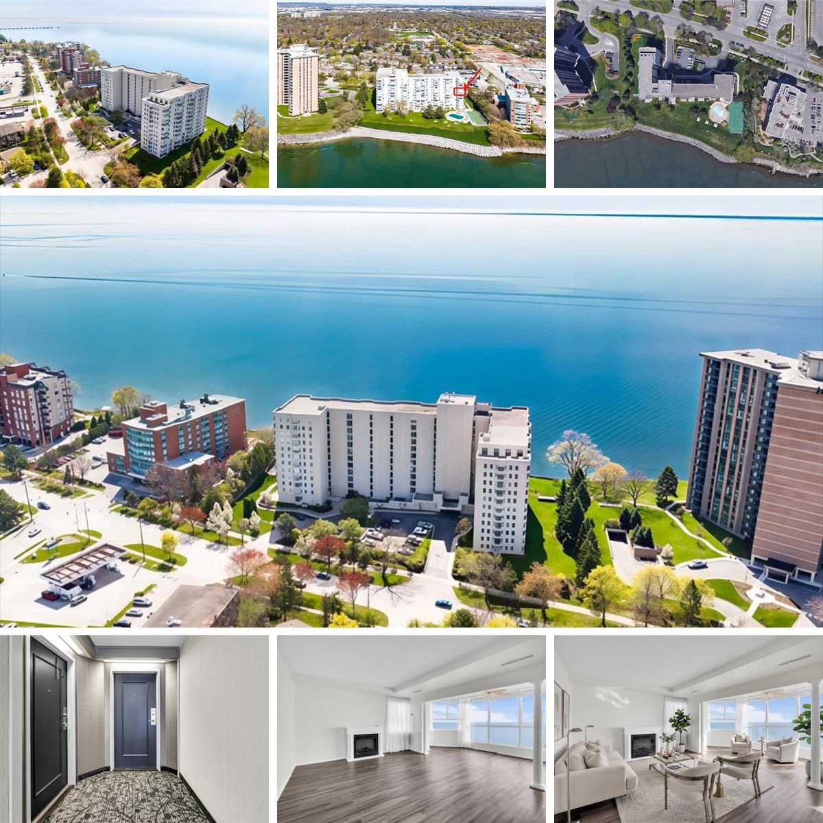 Welcome to this bright, south-facing waterfront condo with direct views of Lake Ontario. This well-laid-out 2-bedroom, 2-bathroom suite offers approximately 1,277 sq ft of living space with laminate flooring throughout and large windows that fill the unit with natural light.The living area comes with an electric fireplace and flows into a spacious sunroom overlooking the lake, ideal for everyday living or entertaining. The kitchen features ample cabinetry, stone countertops, stainless steel appliances, and a breakfast area by the bay window. The primary bedroom includes a 3-piece ensuite and closet. The second bedroom is well sized and located near the main 3-piece bathroom. A separate laundry room provides in-suite convenience.Property comes with one underground parking space (exclusive use). Maintenance fees include heat, hydro, water, parking, common elements, and building insurance.Well-managed waterfront building with amenities including outdoor pool, tennis court, exercise room, party/meeting room, sauna, community BBQ, elevator, and beautifully maintained lakefront grounds with a seawall. Direct lake access and south shoreline exposure.Convenient location close to parks, trails, public transit, and amenities, with easy access to Appleby GO and major highways.